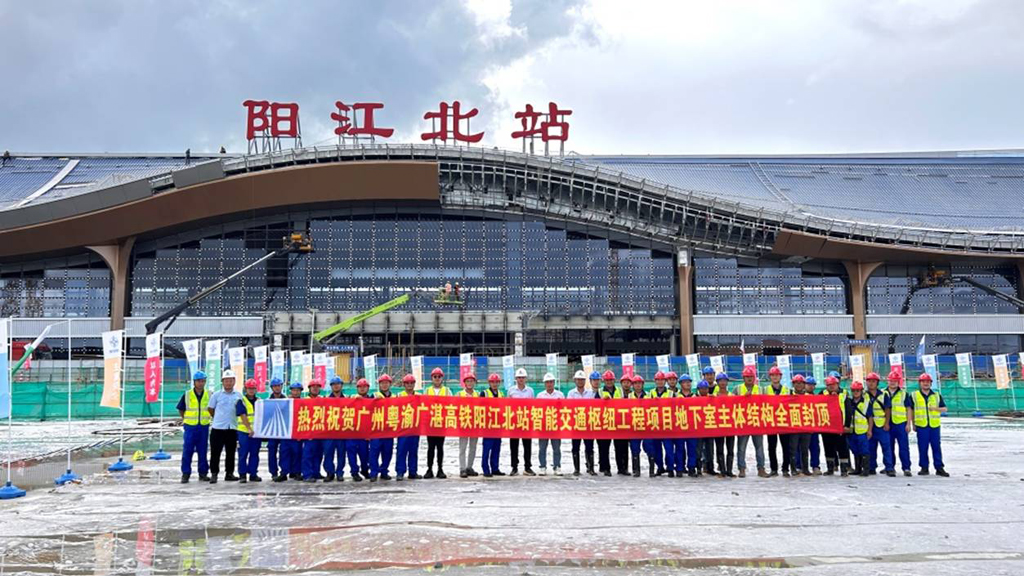 阳江北站智能交通枢纽项目地下室主体结构全面封顶