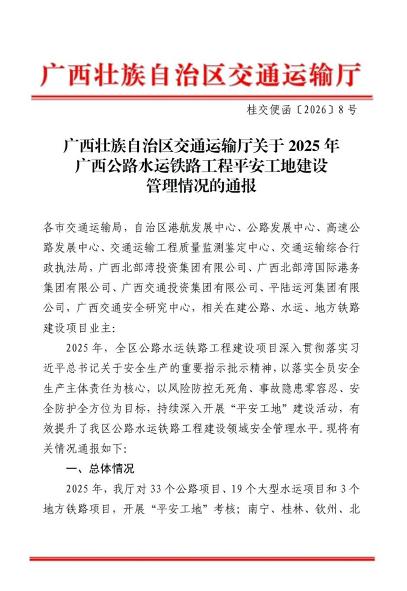 此次获评,是上级主管部门对我公司安全管理、工程建设、文明施工的充分肯定。公司将以此为动力,坚守安全底线、争创优质工程,持续为重大项目建设与交通事业发展贡献力量!